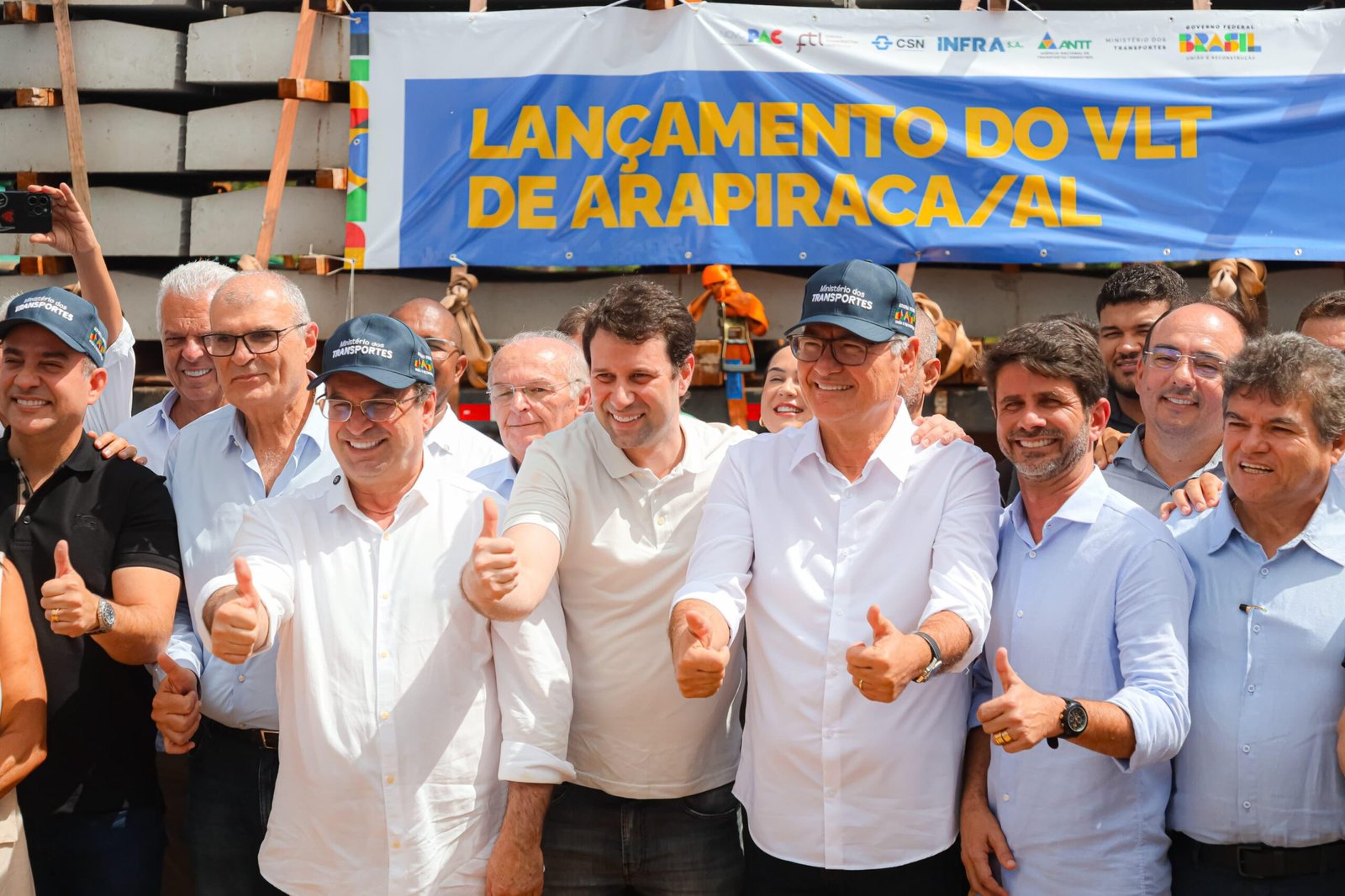 O governador Paulo Dantas, o ministro dos Transportes, Renan Filho, e o prefeito de Arapiraca, Luciano Barbosa, lançaram, nesta segunda-feira (7), as obras de implantação do Veículo Leve sobre Trilhos (VLT), no município do Agreste do estado. Serão investidos mais de R$ 200 milhões na instalação do novo equipamento.