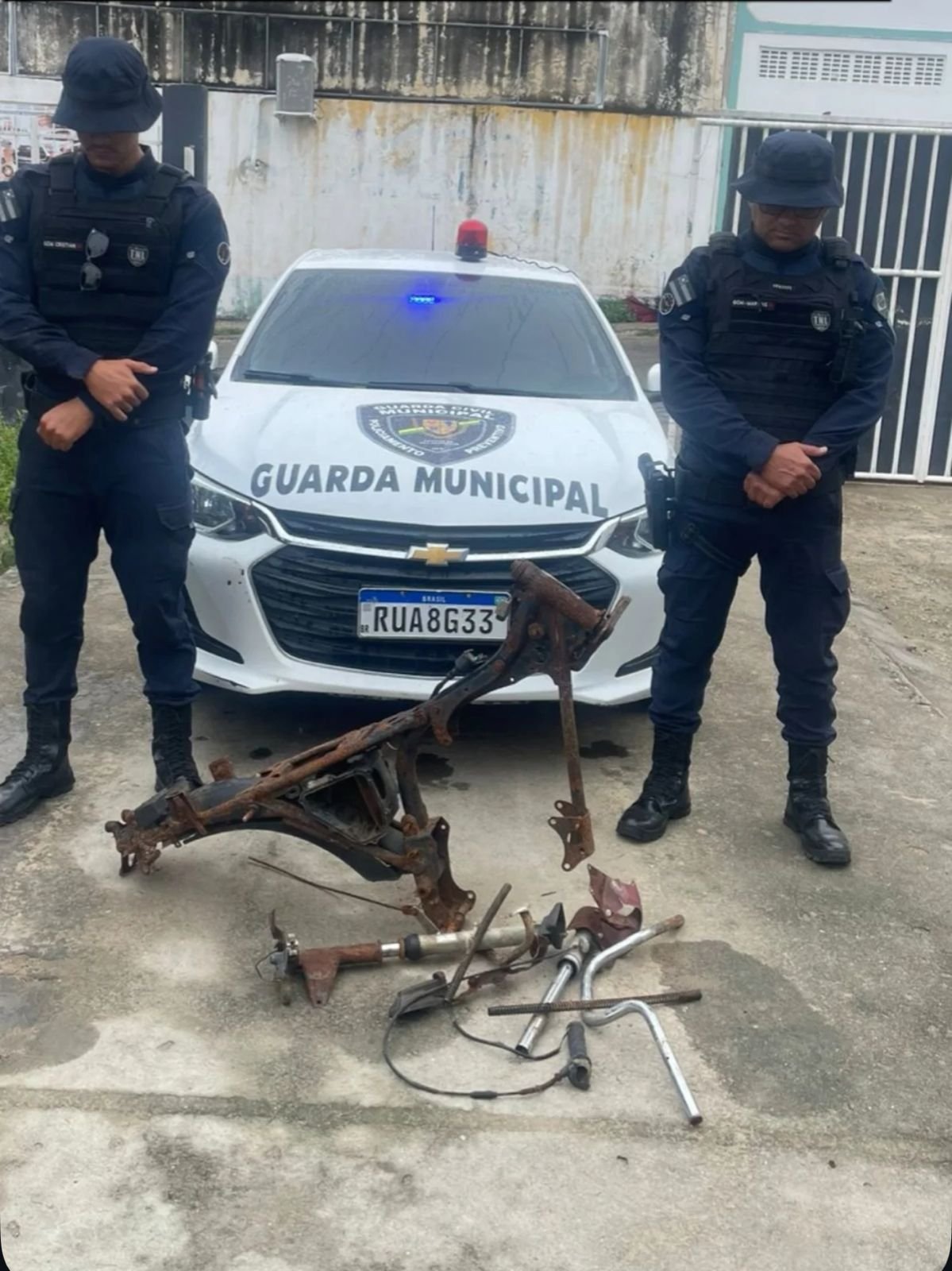 Com atuação rápida, os agentes se deslocaram até o local indicado, onde confirmaram a presença do chassi e de componentes do amortecedor dianteiro da motocicleta. O material foi recolhido e encaminhado à Delegacia de Polícia Civil para investigação.