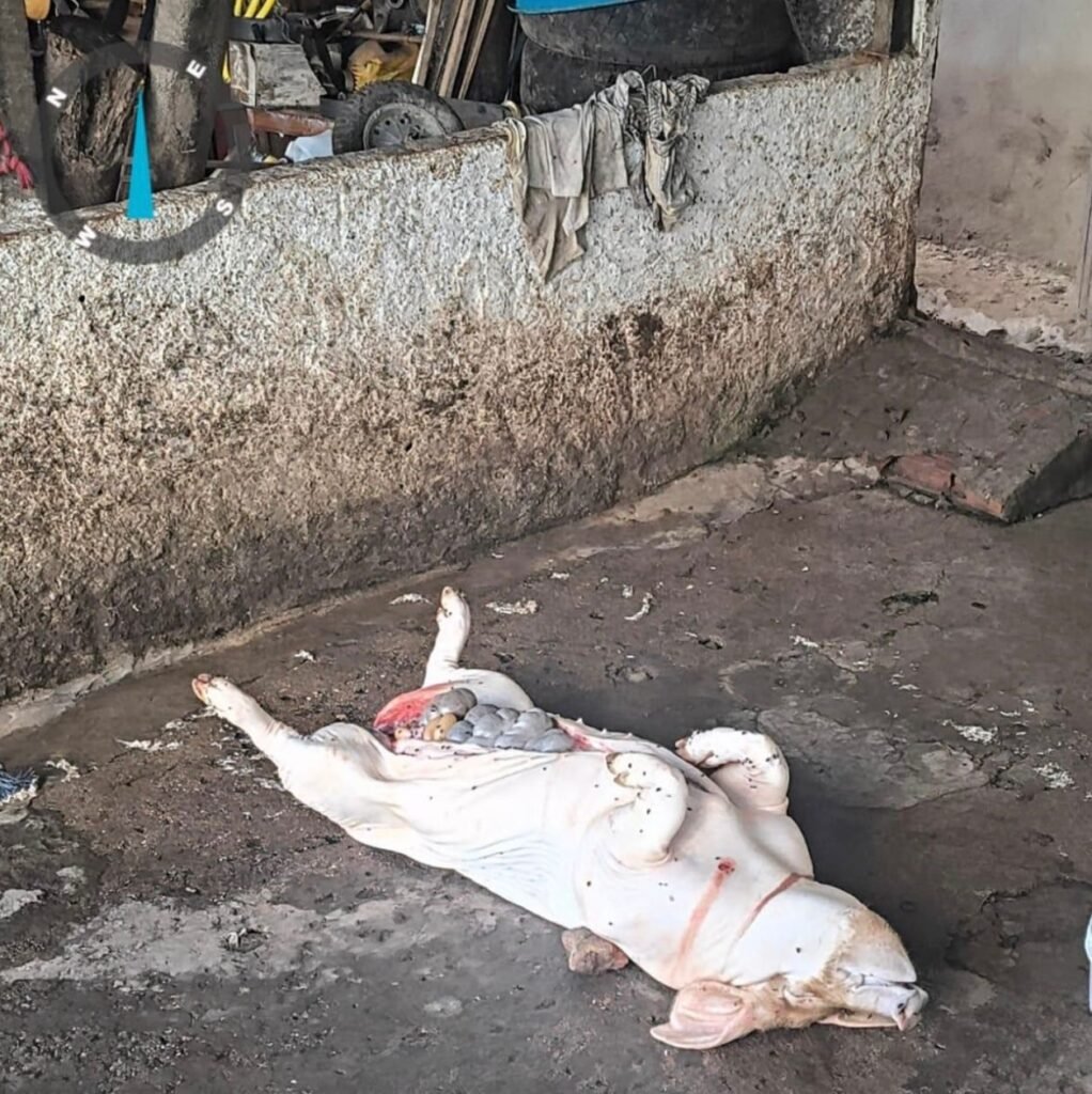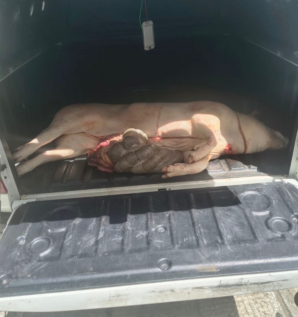 Ao chegar ao local, a guarnição ambiental, com apoio do serviço de inteligência e da Diretoria de Inteligência (DINT), localizou o suspeito. Questionado, ele confirmou que realizava o abate de um porco, alegando que seria para consumo próprio e que não possuía licença para a atividade.