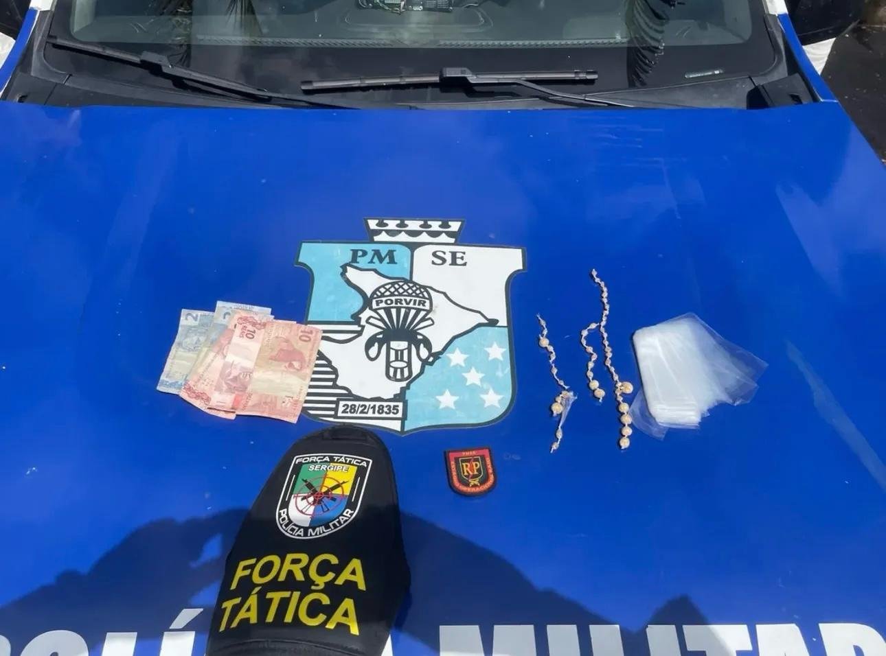 Policiais do 4° Batalhão de Polícia Militar do Estado de Sergipe realizavam patrulhamento ostensivo no Bairro Olaria em Canindé de São Francisco, região do Sertão, quando ao entrarem na rua “C” visualizaram um casal em frente a uma residência que ao perceber a presença policial tentaram se desfazer de um objeto.