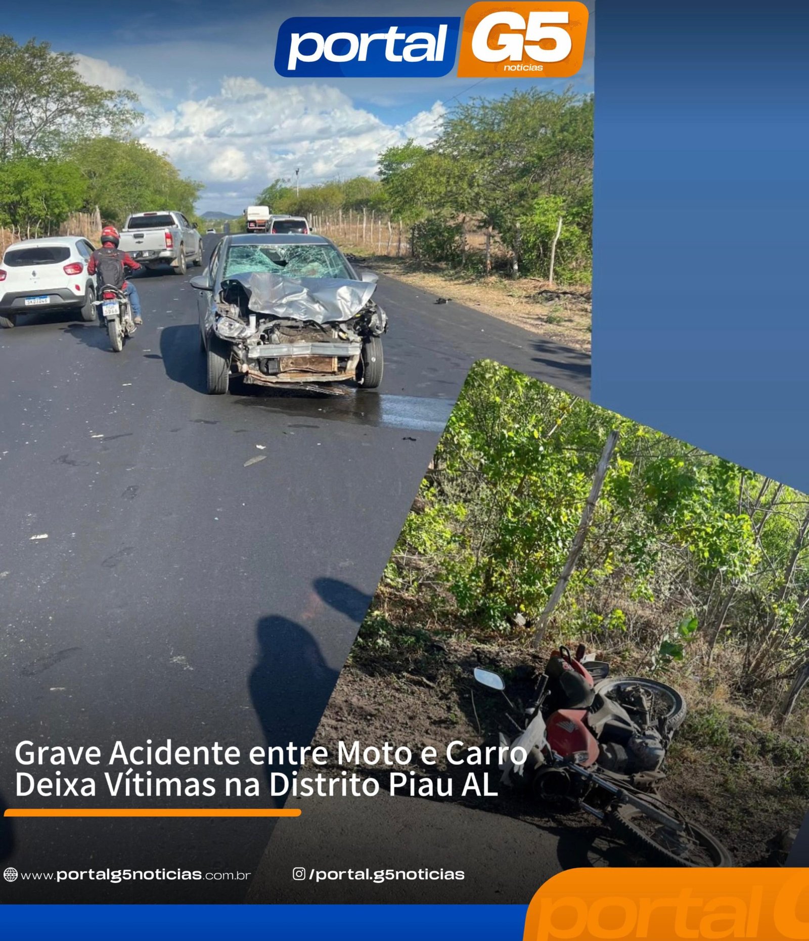 Um grave acidente envolvendo uma motocicleta e um carro foi registrado na rodovia que liga o Distrito Piau a Cabloco.